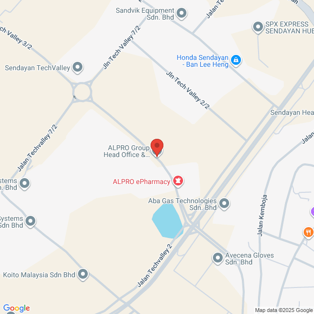 ALPRO Group Head Office & Distribution Centre. Unit V1-A, Lot 45880 Jalan Tech Valley 3/2, Sendayan Techvalley, 71950 Seremban, Negeri Sembilan, Malaysia